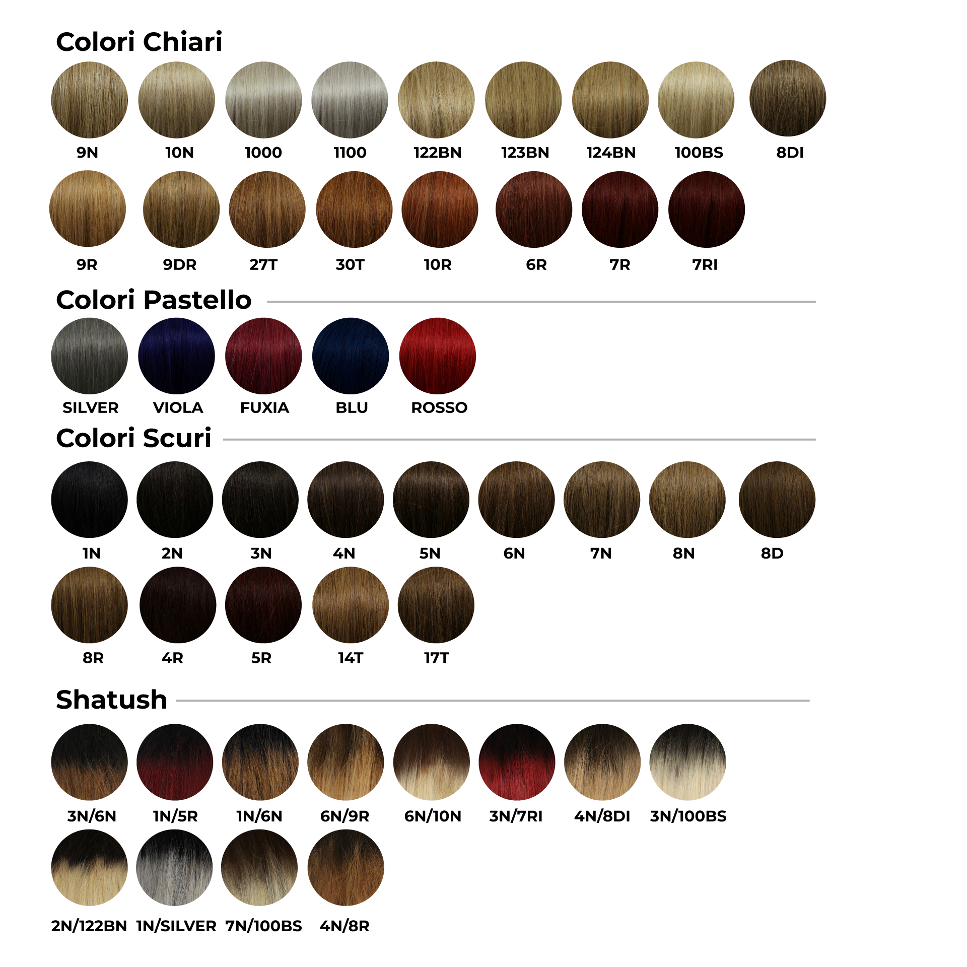 Utilizziamo capelli selezionati di diverse origini — russi, indiani, vietnamiti e tailandesi — per offrire una gamma completa di texture e tonalità.